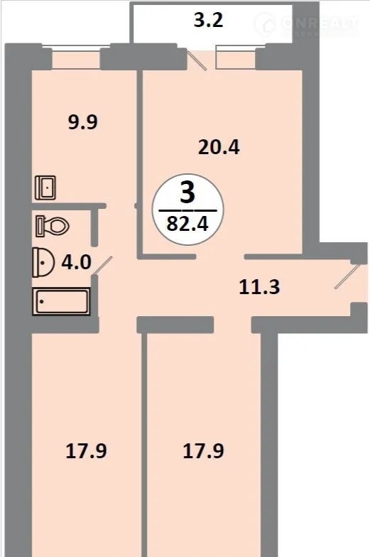 Общая площадь 82.3 м2