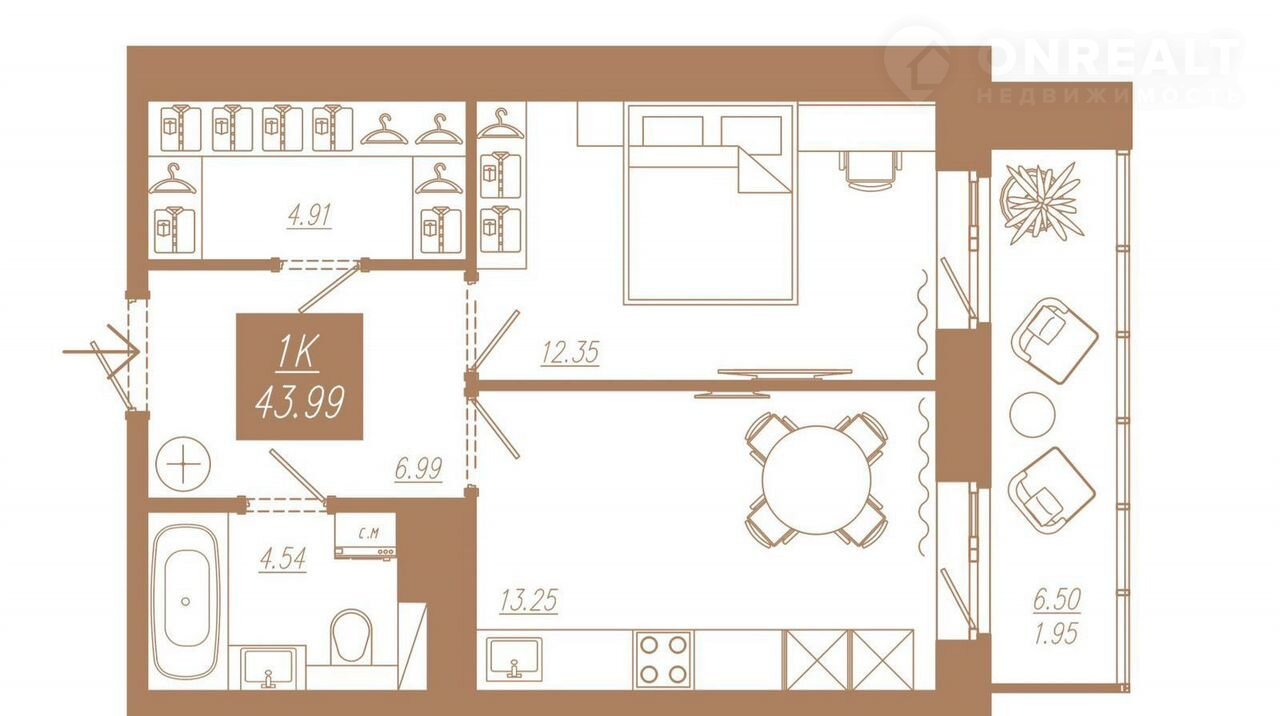 Общая площадь 44 м2