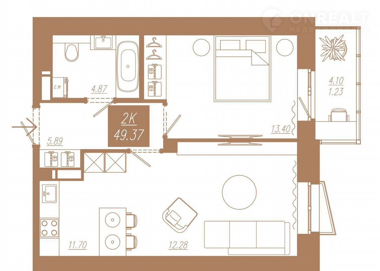 Общая площадь 49.4 м2