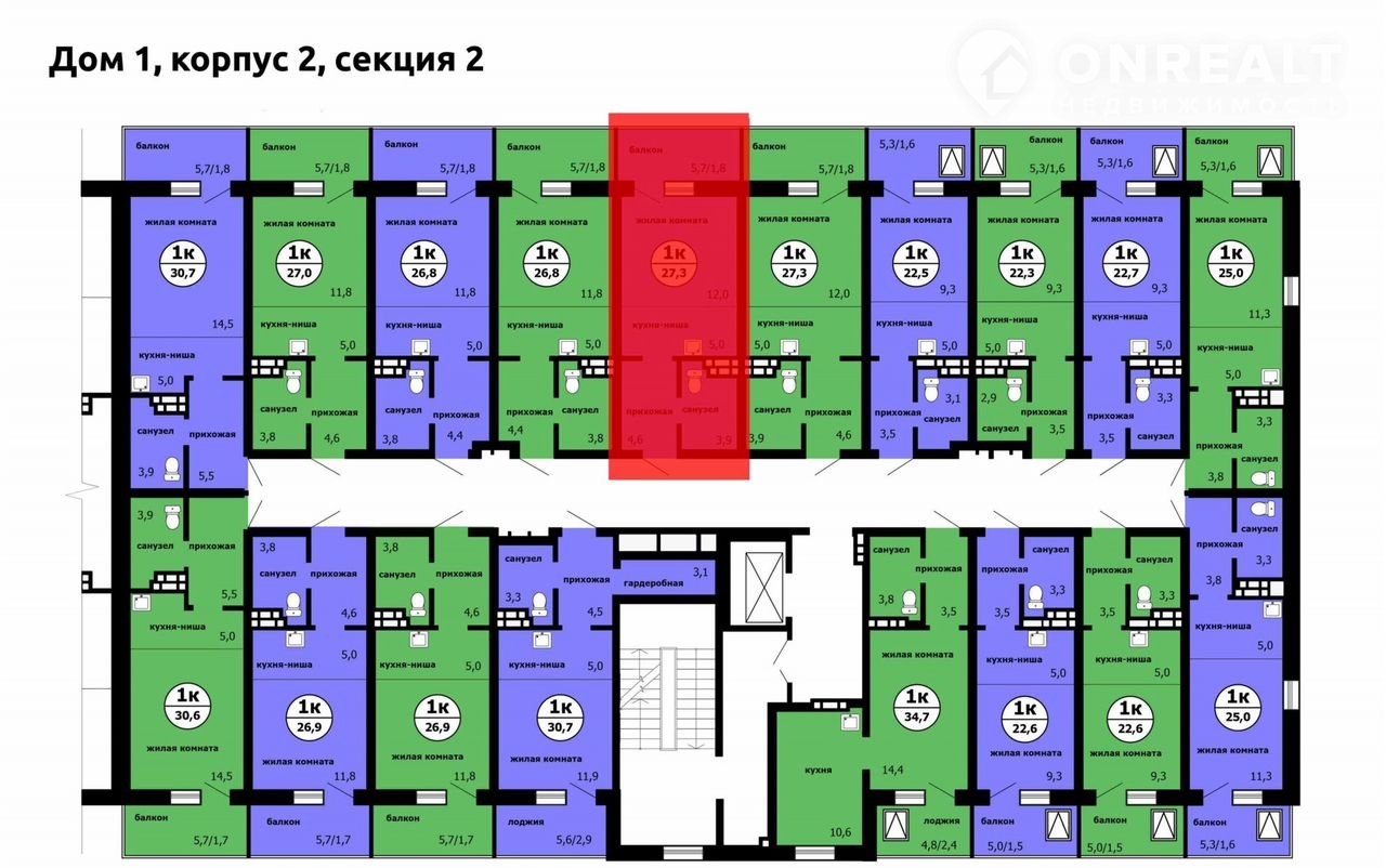 Общая площадь 27.3 м2