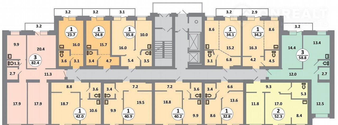 1-комнатная квартира, 34.6 м2, этаж 11 / 15, на продажу в Красноярске, проспект 60 лет Образования СССР, 48