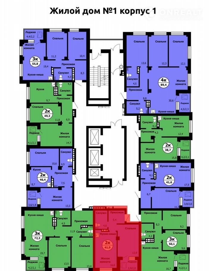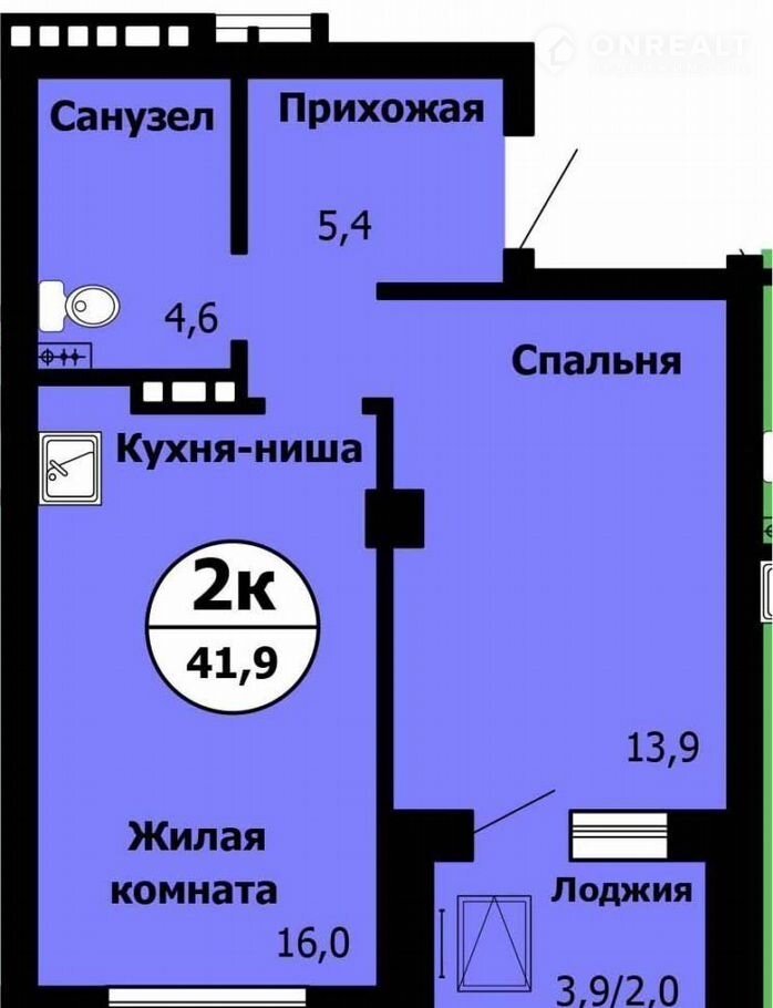 Общая площадь 41.9 м2