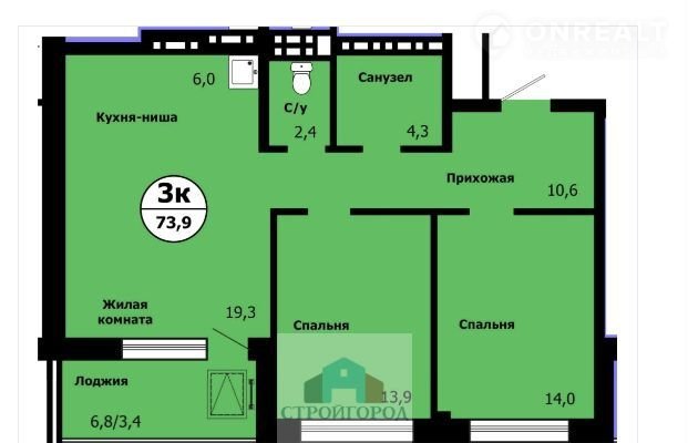 Общая площадь 72.4 м2