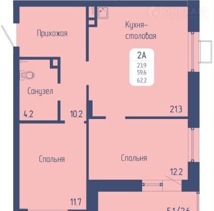 Общая площадь 62.2 м2