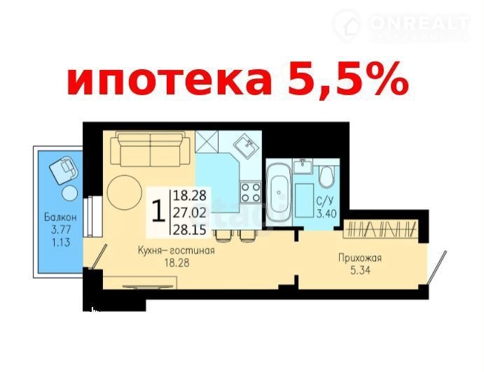 Общая площадь 28.2 м2