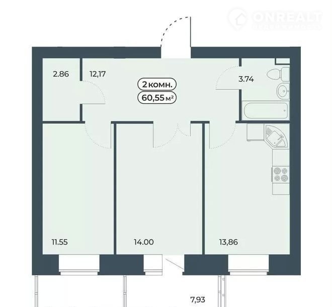 Общая площадь 60.6 м2