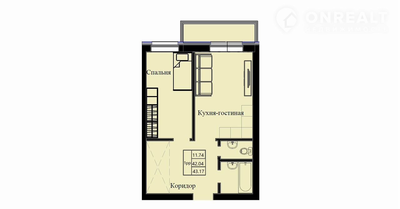 Общая площадь 43.2 м2