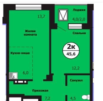 Общая площадь 45.6 м2