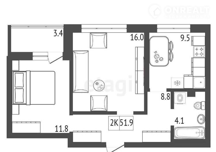 Общая площадь 51.8 м2
