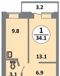 Общая площадь 34.4 м2