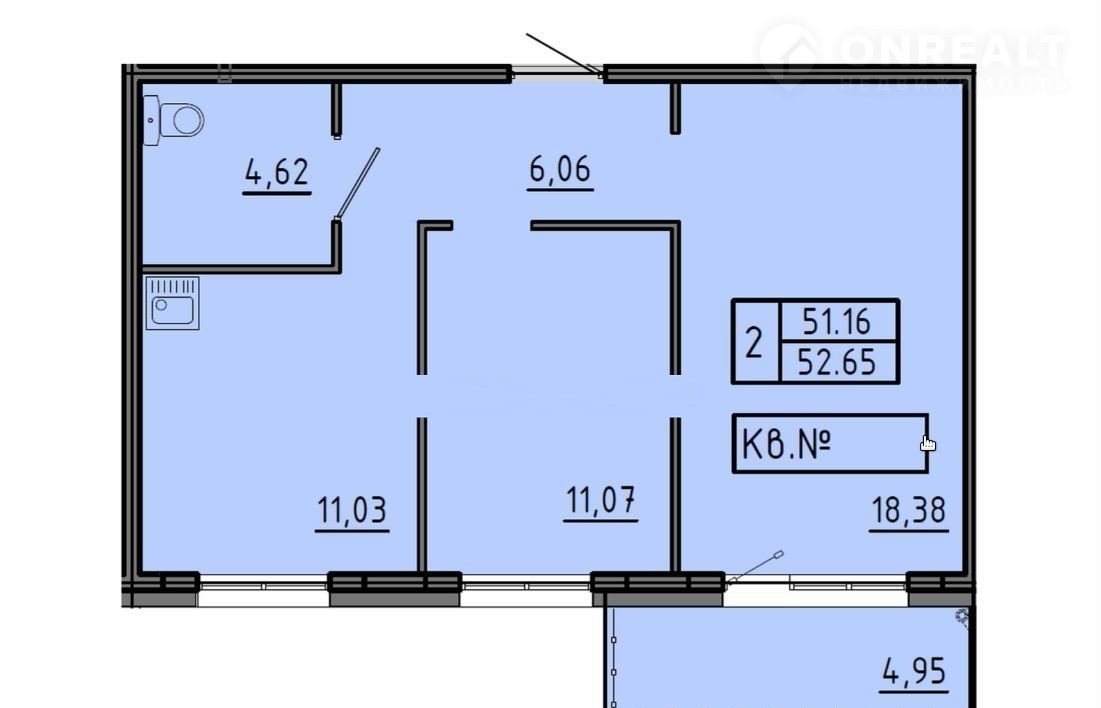 Общая площадь 52.8 м2