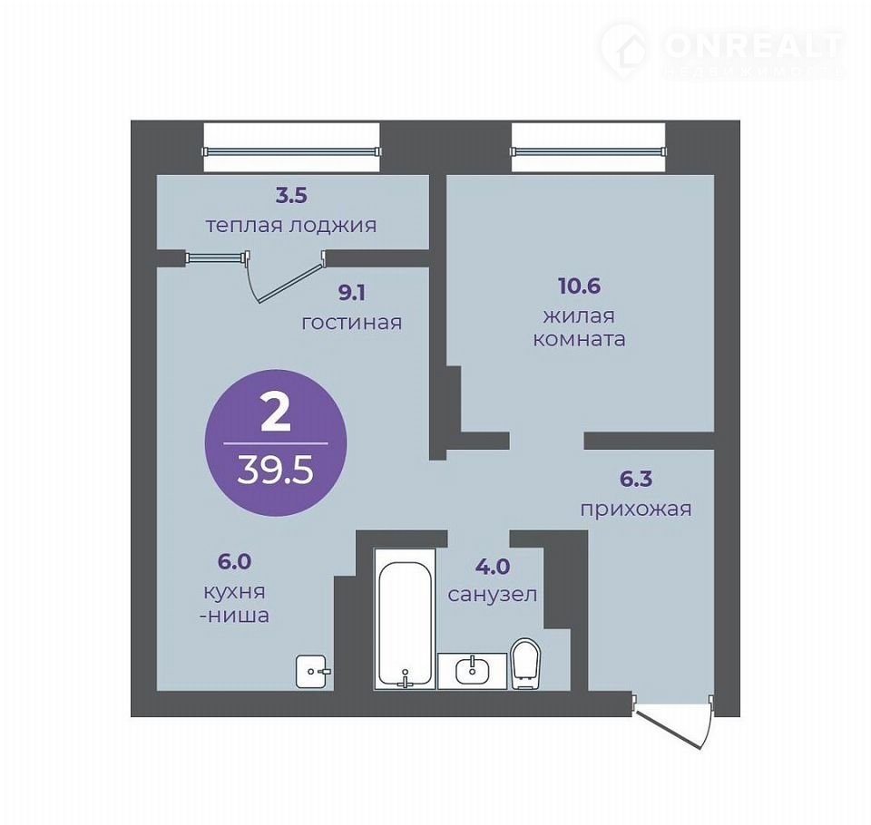 Общая площадь 39.5 м2
