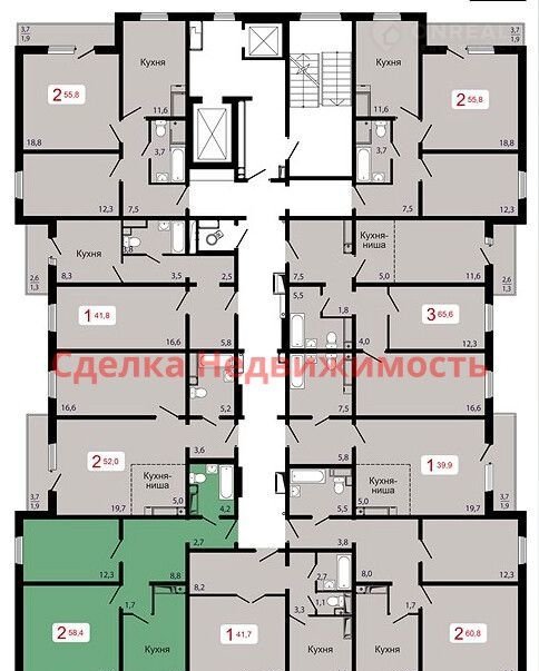 Общая площадь 58.4 м2