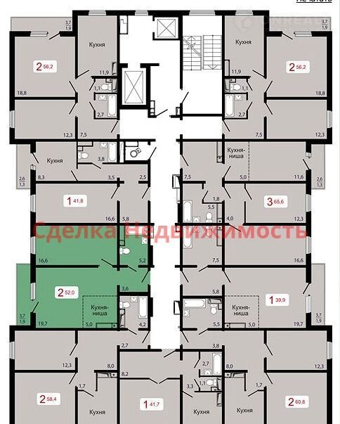 Общая площадь 52 м2