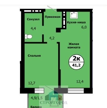 2-комнатная квартира, 40.2 м2, этаж 12 / 19, на продажу в Красноярске, улица Лесников, 41Б