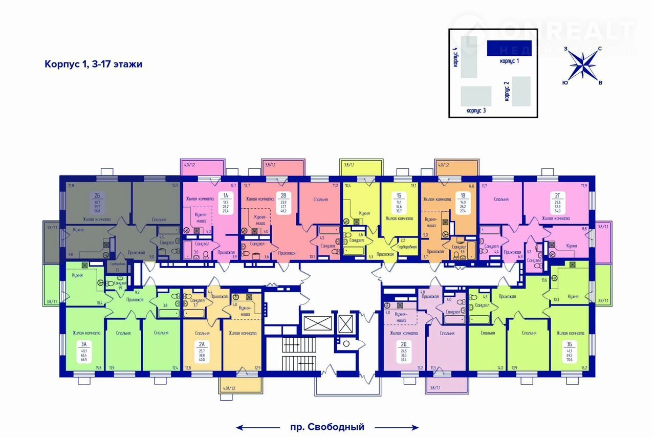 2-комнатная квартира, 56.8 м2, этаж 15 / 17, на продажу в Красноярске, Свободный проспект, 66Рк1