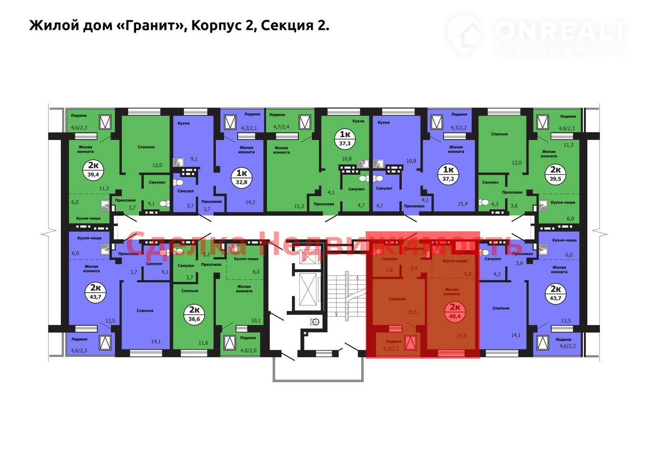 Общая площадь 40.4 м2