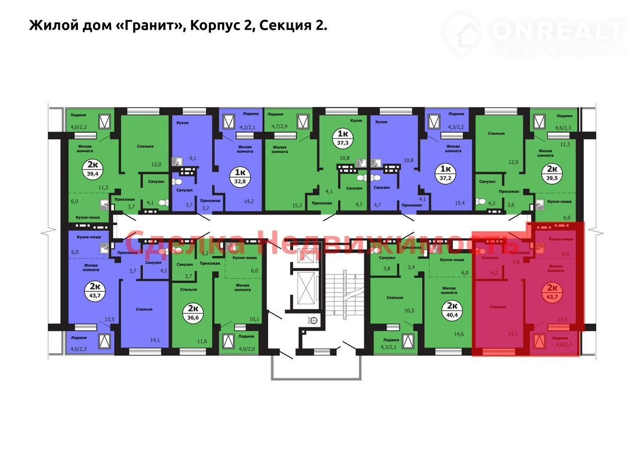 Общая площадь 43.7 м2