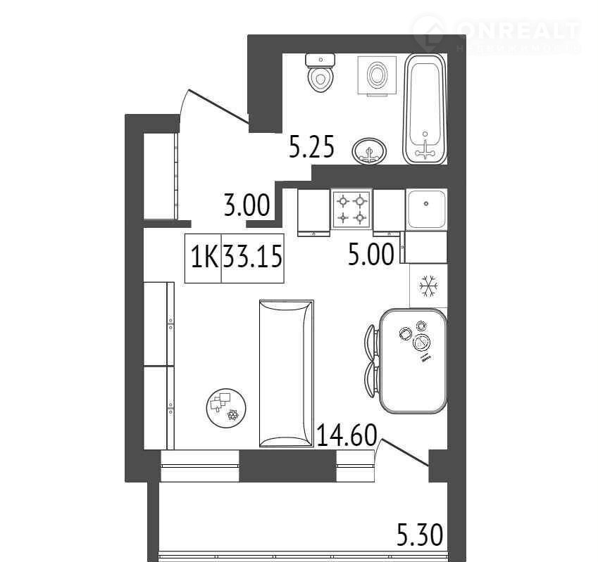 Общая площадь 33.2 м2