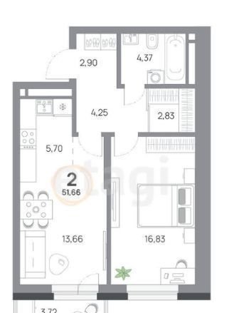 Количество комнат 2