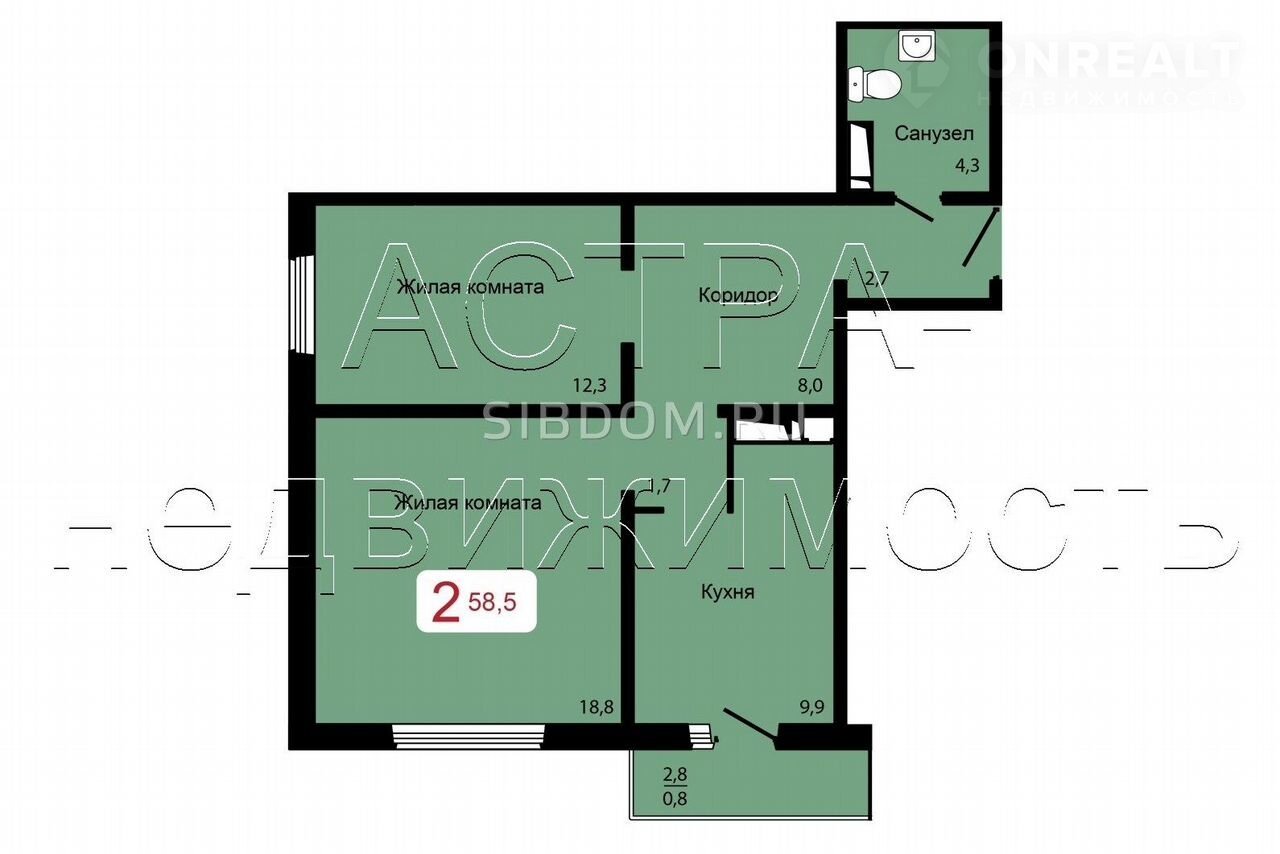Общая площадь 58.5 м2