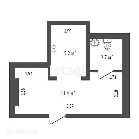 Помещение с санузлом и душем, но без окна. Отлично подойдёт под бизнес (парикмахерская, спортзал или магазин).