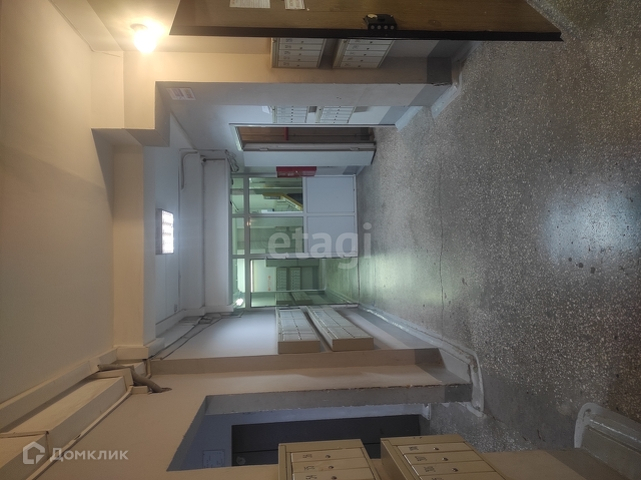 Внутри здания (за лифтом) - вход через через подъезд или магазин.