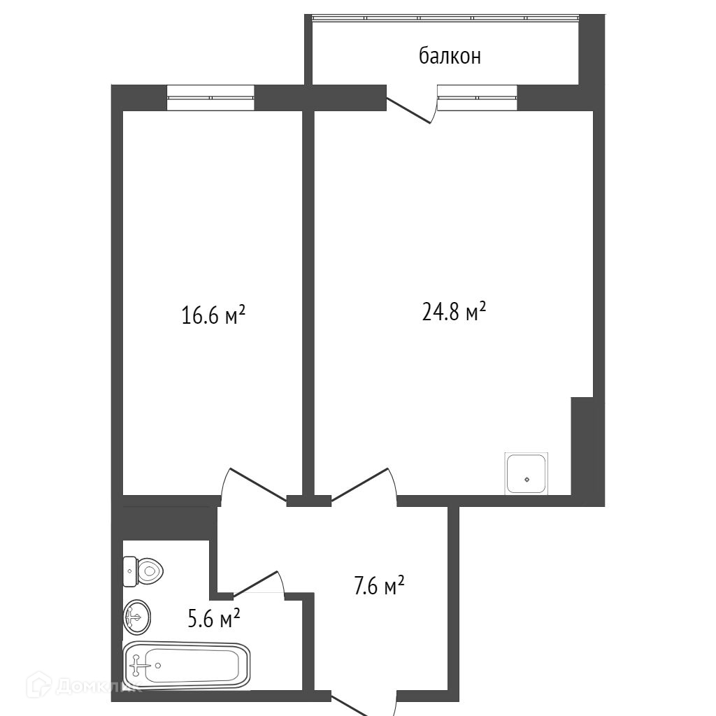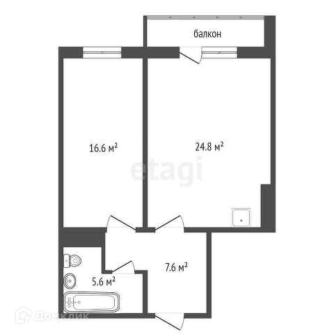 Евро-планировка: кухня-гостиная 24,8 кв.м., спальная комната 16,6 кв.м.,санузел совмещённый.