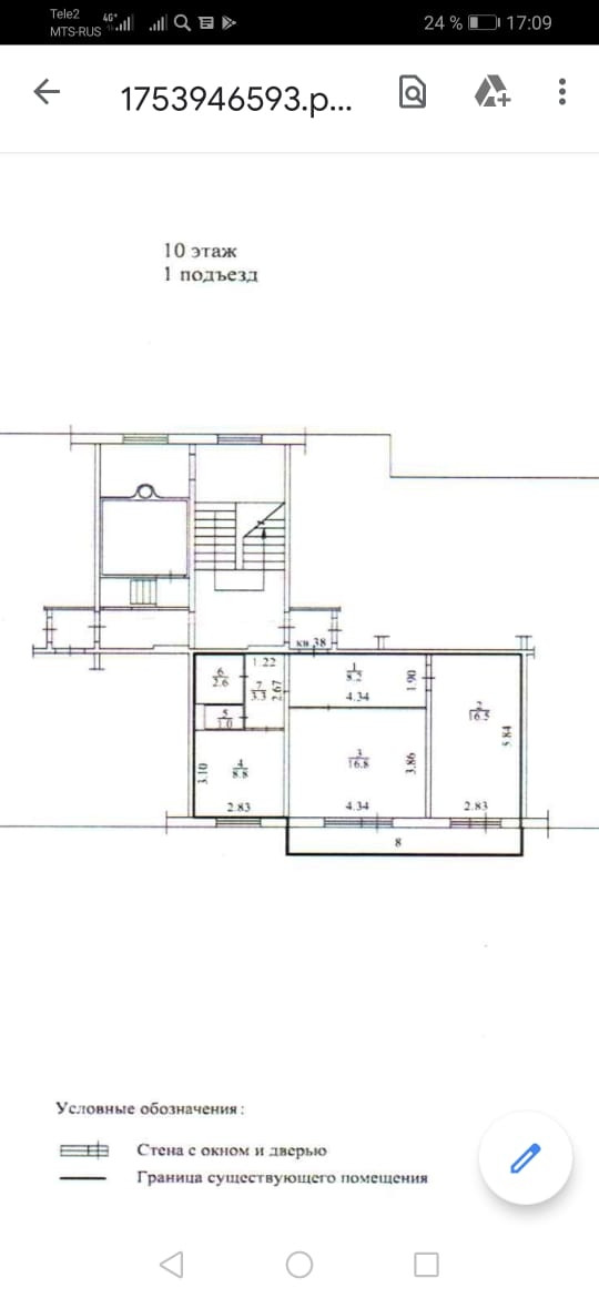 Балкон, лоджия 1 балкон