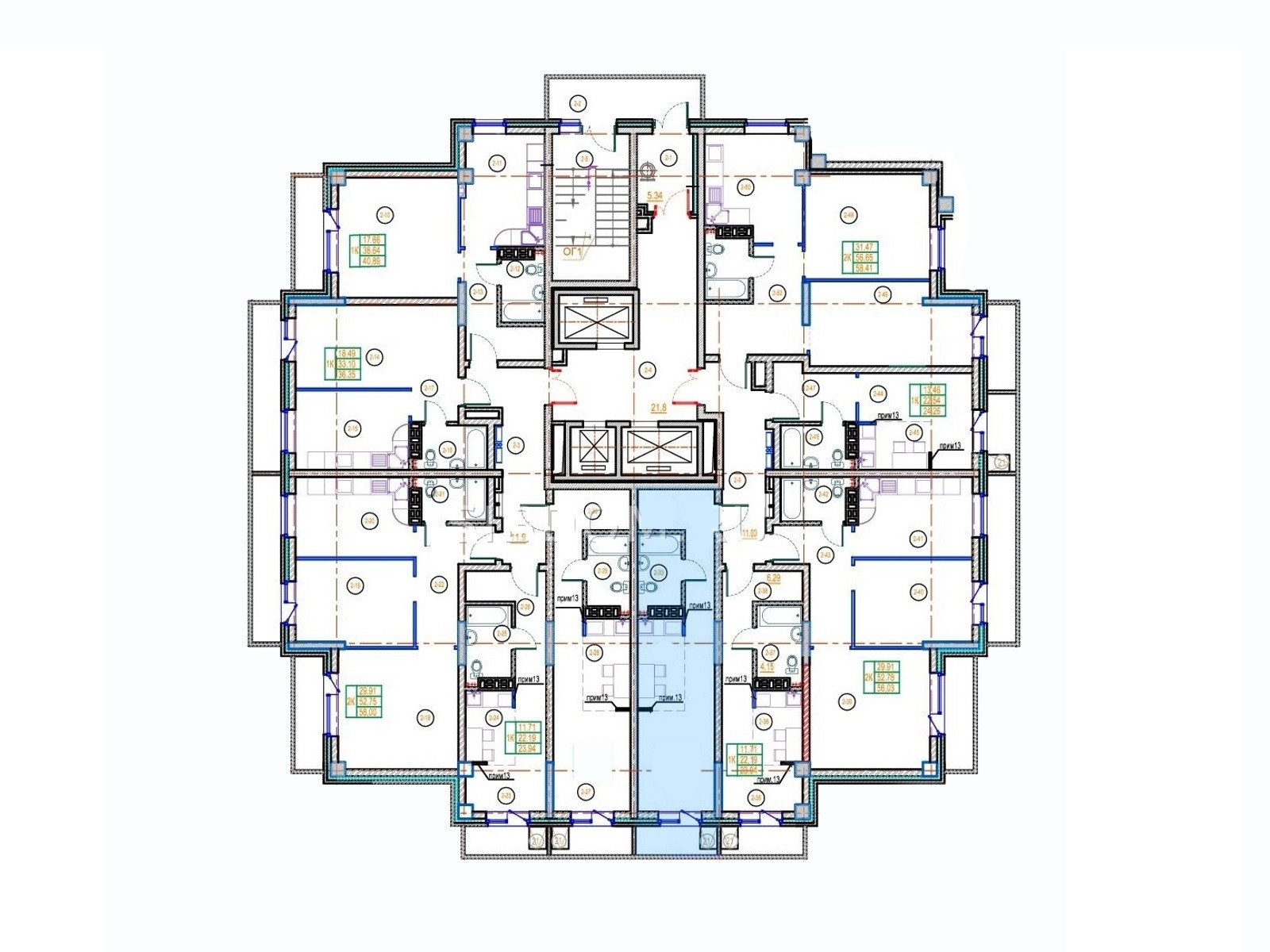 - Планировка удачная ещё и относительно стояка: по этой стороне нет выпирающей колонны посреди комнаты, в отличие от планировки с другой стороны дома.