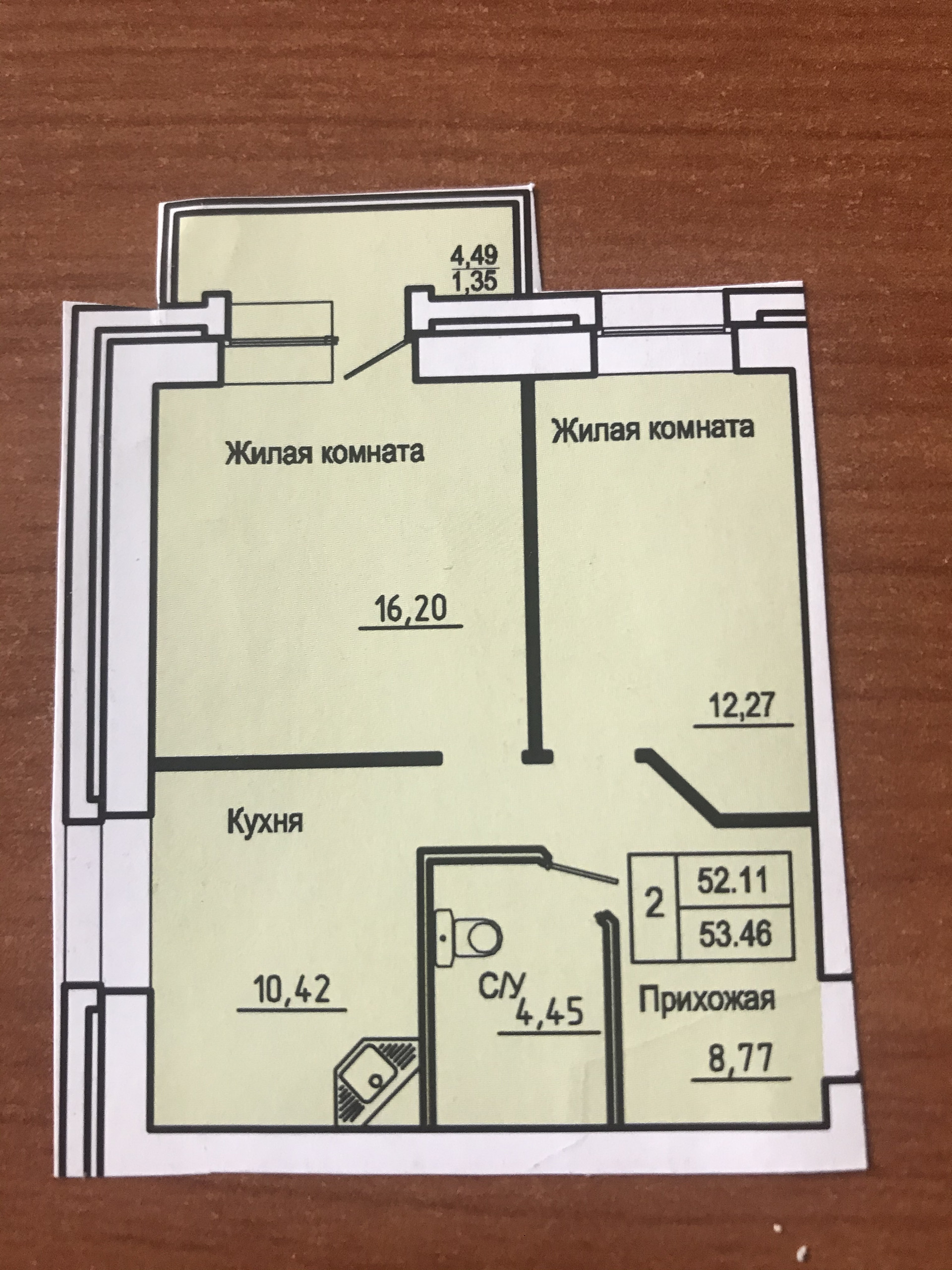 Общая площадь 53.5 м2
