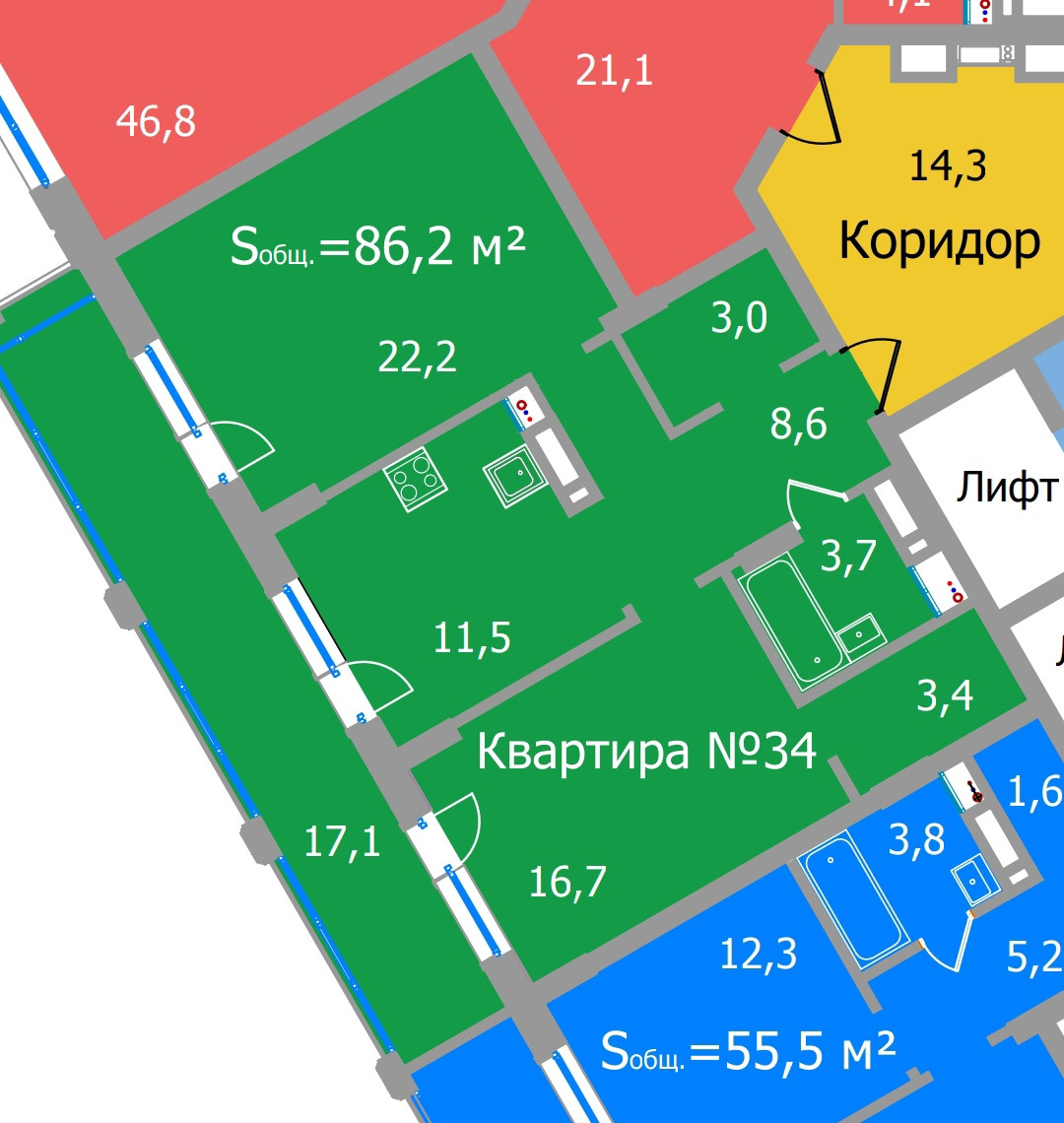 Общая площадь 86.2 м2