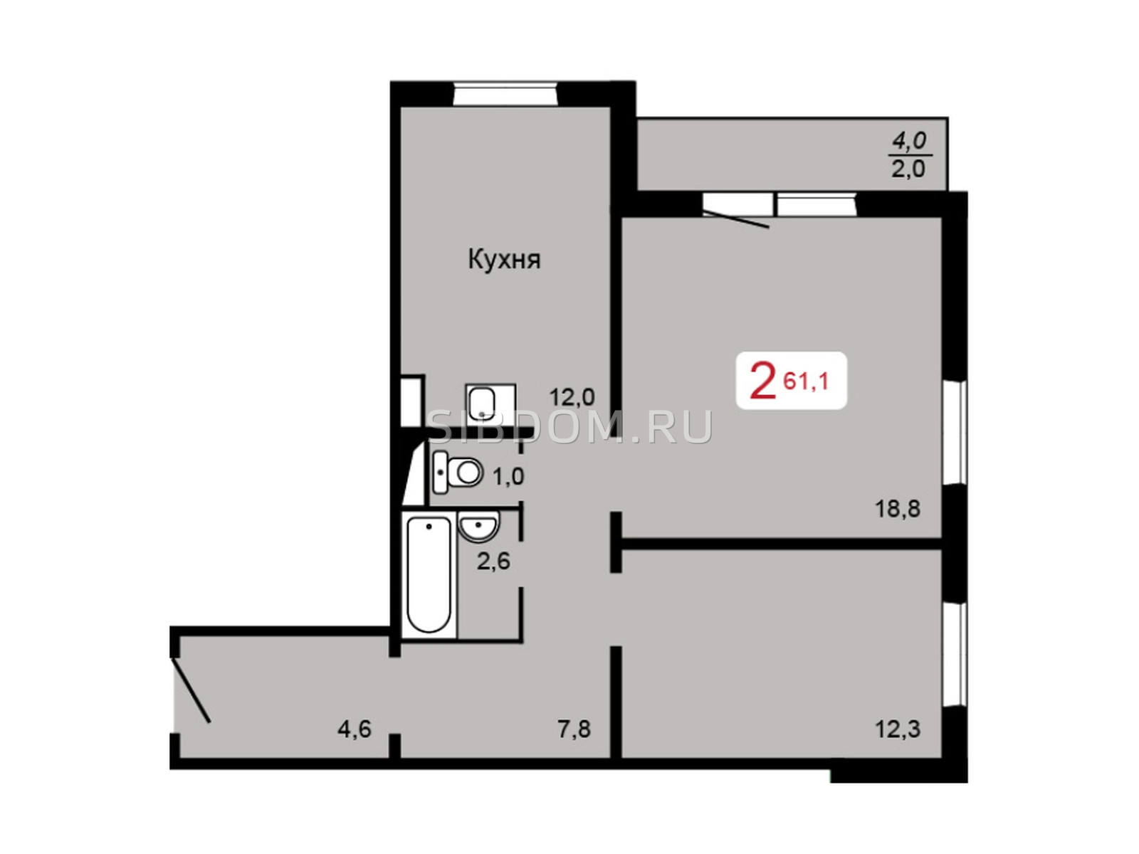 Общая площадь 61 м2