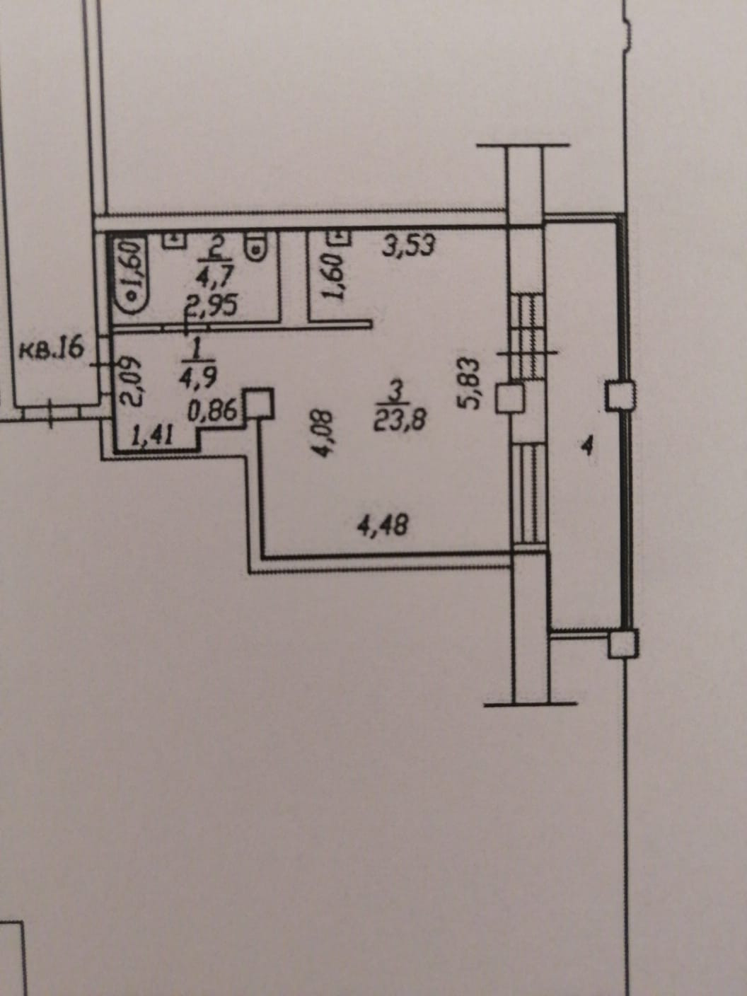 Балкон, лоджия 1 балкон