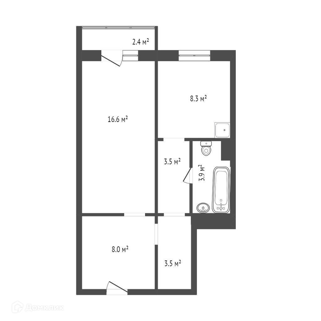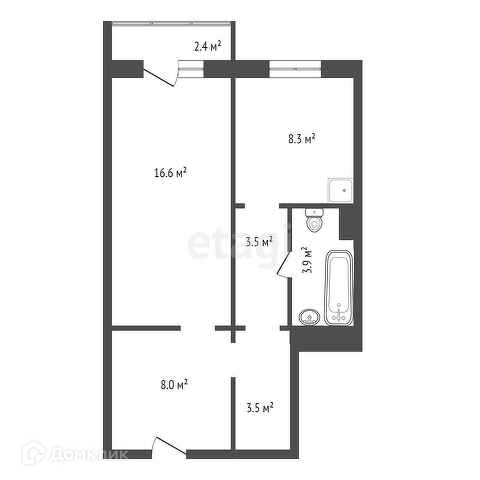 Общая площадь 45.9 м2