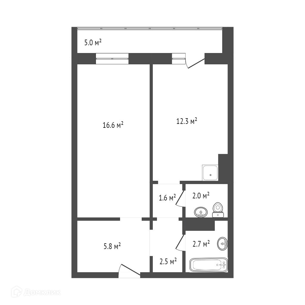 Общая площадь 45.9 м2