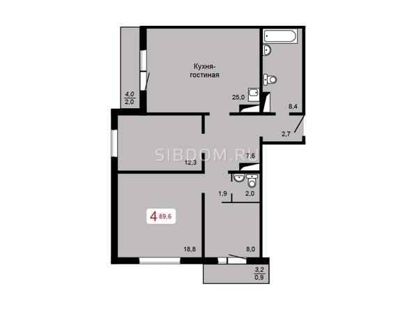 Общая площадь 89.4 м2
