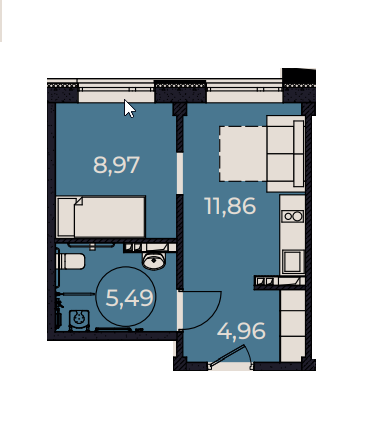 Жилая площадь 8.97 м2