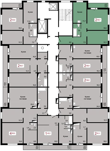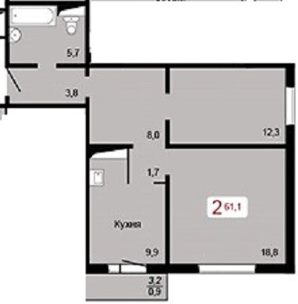 Общая площадь 61.1 м2