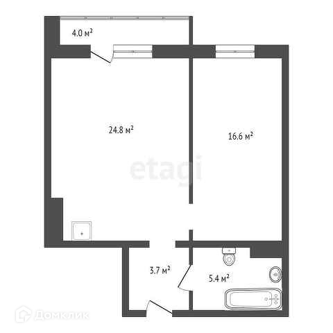 Общая площадь 52.5 м2