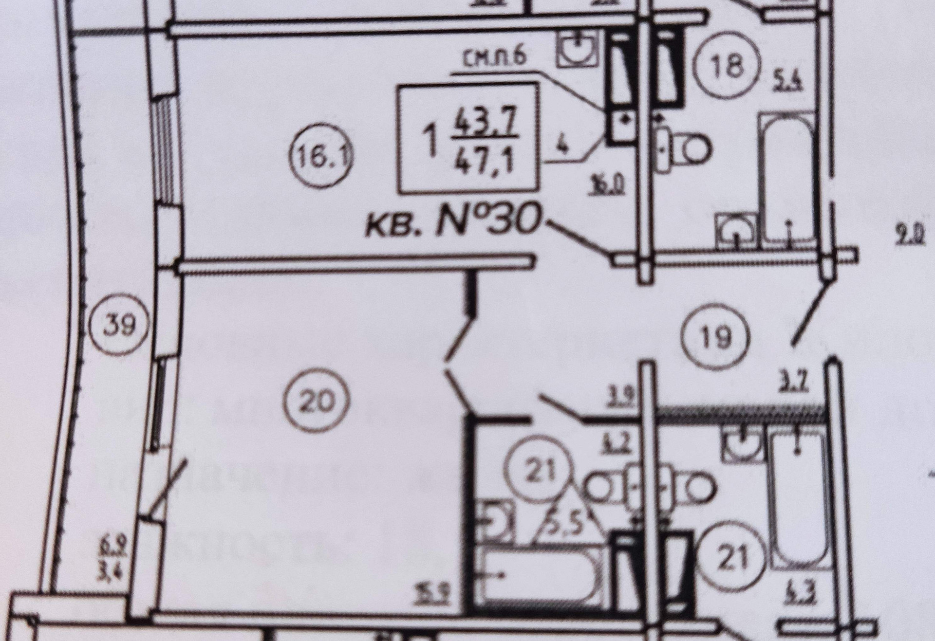 Общая площадь 47.1 м2