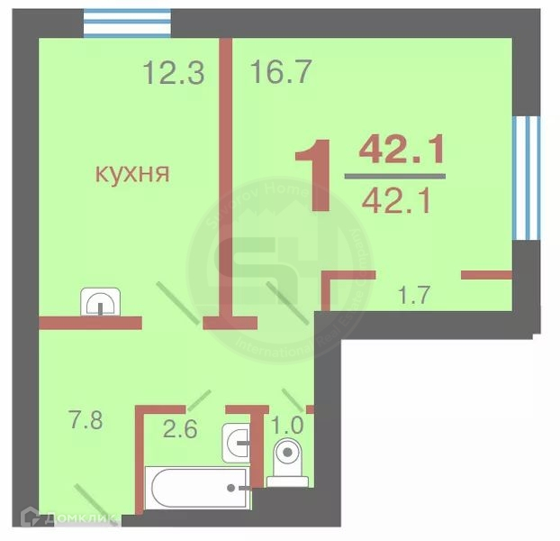 Общая площадь 42.1 м2