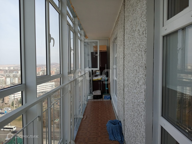 Балкон с прекрасным видом в длину всей квартиры, выход из комнаты и кухни.