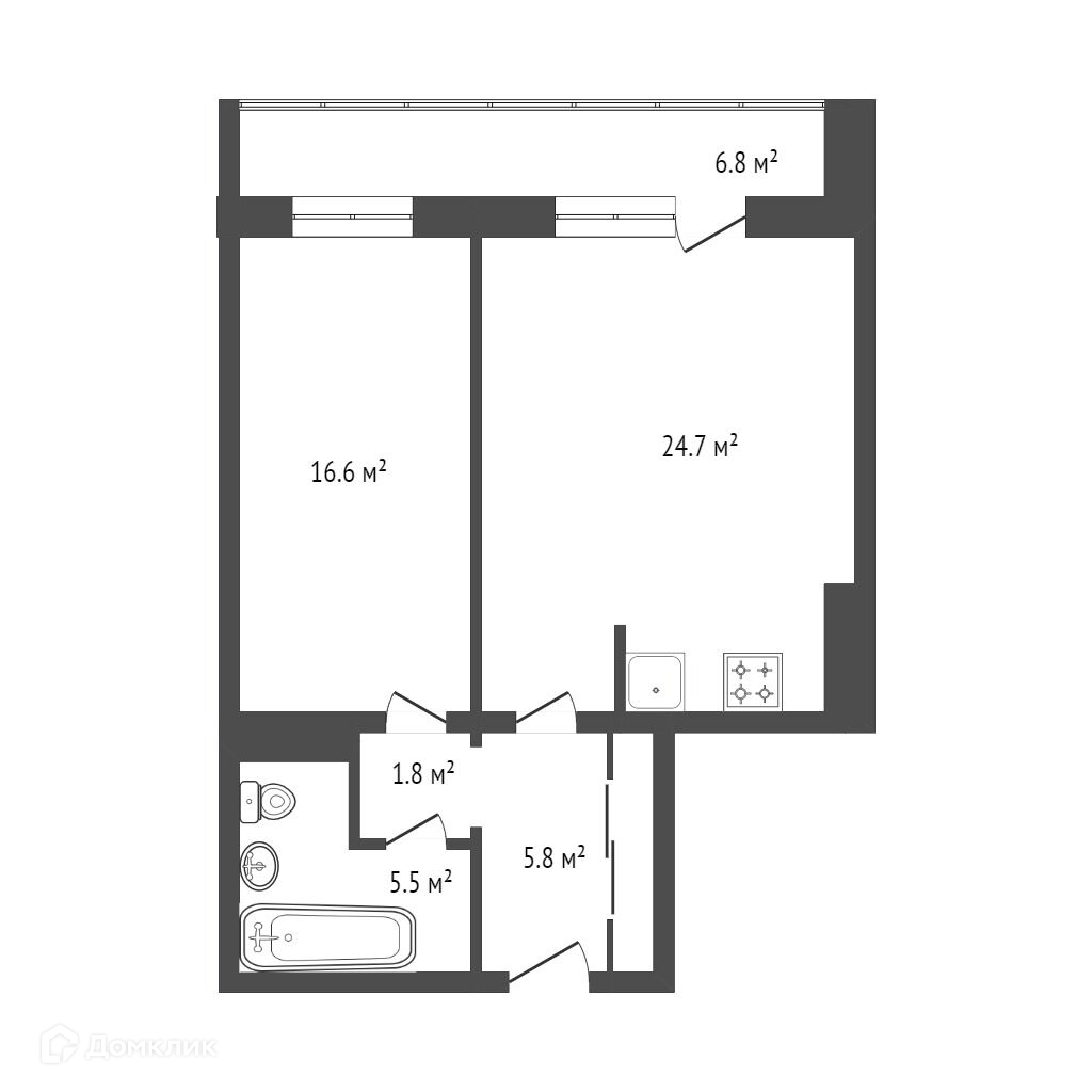 Балкон, лоджия 1 балкон