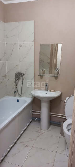 В квартире выполнен качественный ремонт, на полу ламинат, на стенах виниловые обои, натяжные потолки, санузел совмещенный, очень просторный. На лоджии теплый пол, покрытый керамогранитом - под мрамор.