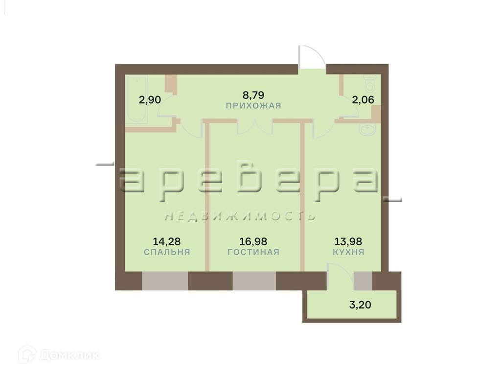 Общая площадь 58.99 м2