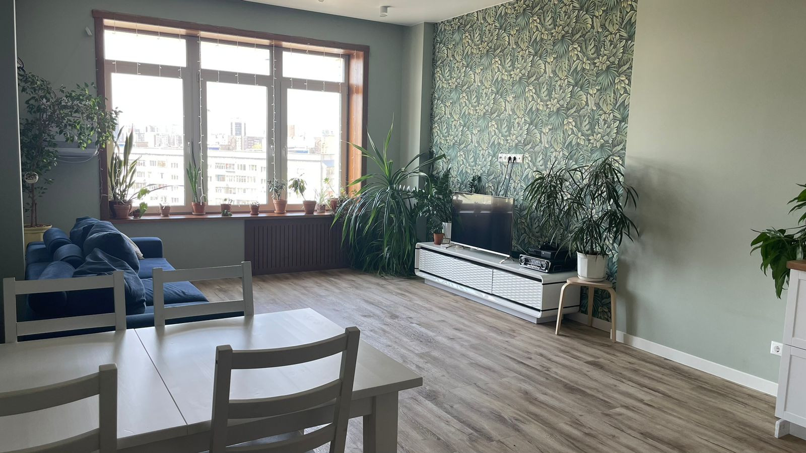 Что еще? У этой квартиры есть отдельная постирочная комната, качественные обои, замененные окна, спрятанные стояки батарей и расширенные подоконники. Откосы и подоконники выполнены из массива, а натяжные потолки создают впечатление простора и стиля.