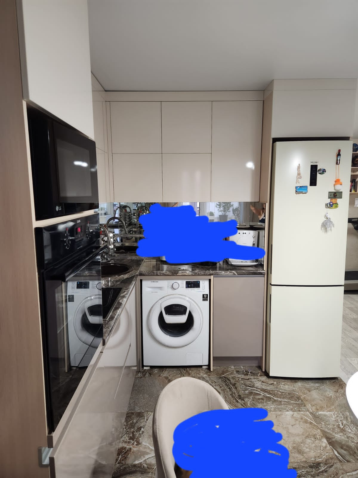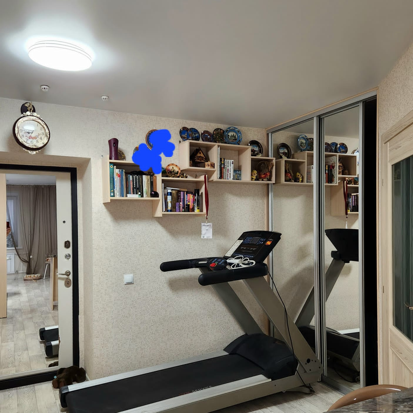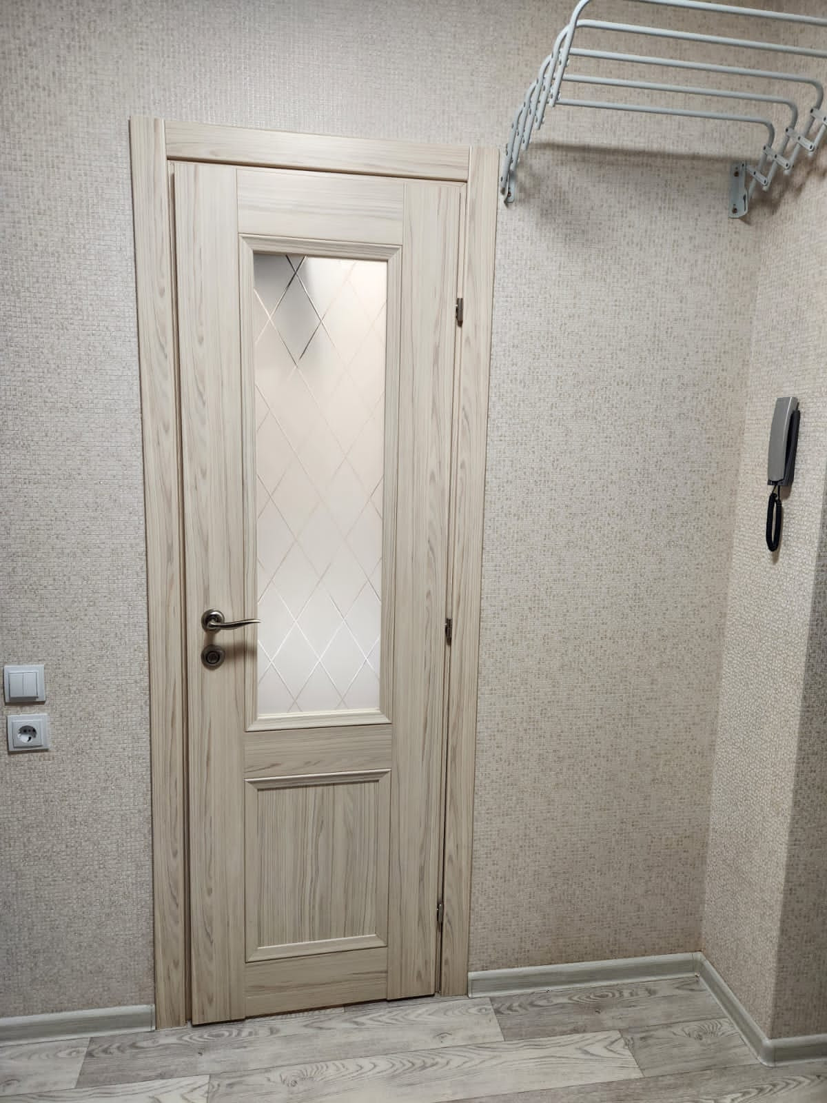 Потолки везде наяжные матовые, входные двери шумоизоляционные, изнутри зеркальные.