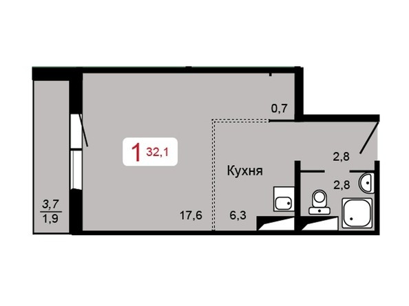 Балкон, лоджия 1 балкон
