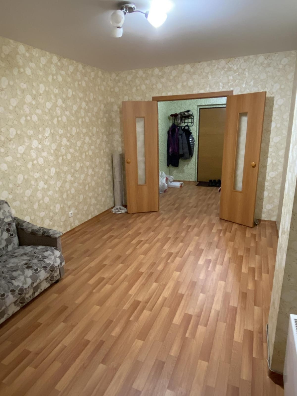 Отличное состояние, натяжные потолки, на полу линолеум, с/у просторный совмещённый, застеклённая лоджия. Большая кухня.